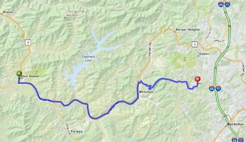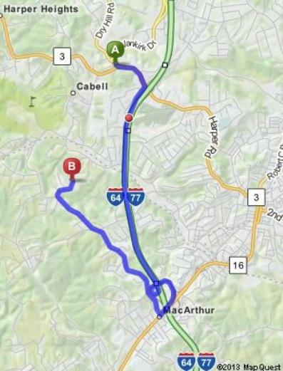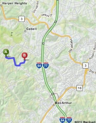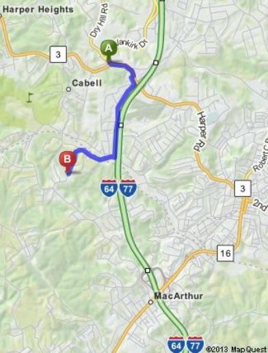 -  110 ft/36 yds from Cabell Heights Road to Rob’s driveway