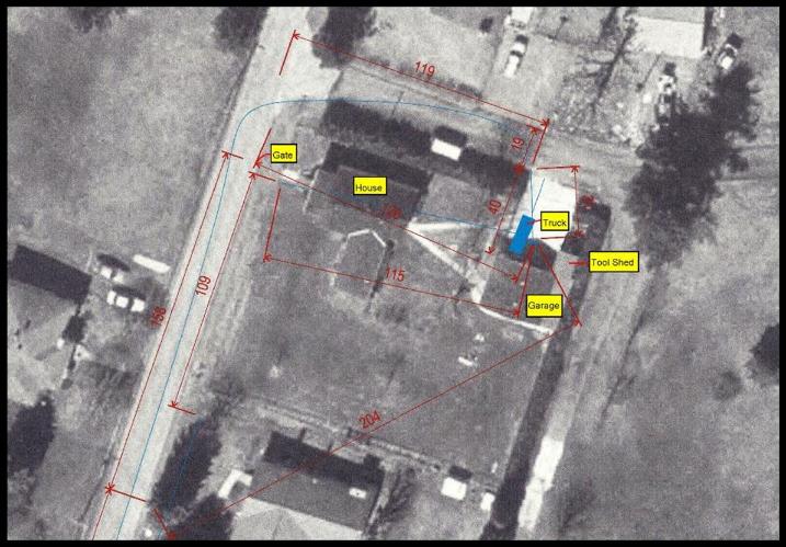 -  126 ft/42 yds from Rob’s truck door to the front gate